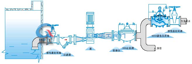 900X緊急關(guān)閉閥用于生活供水和消防供水并聯(lián)供水系統(tǒng)中,正常情況供生活用水,當火災(zāi)發(fā)生時消防用水時,900X緊急關(guān)閉閥自動關(guān)閉生活用水,可以有夠量的消防用水。當消防停止用水時壓力減少,900X緊急關(guān)閉閥自動恢復(fù)生活用水,該閥使系統(tǒng)不需要另設(shè)消防單獨供水管網(wǎng),大大地節(jié)省了工程建設(shè)成本和日常的用水量。該閥控制靈敏、調(diào)試簡單、使用時間長。